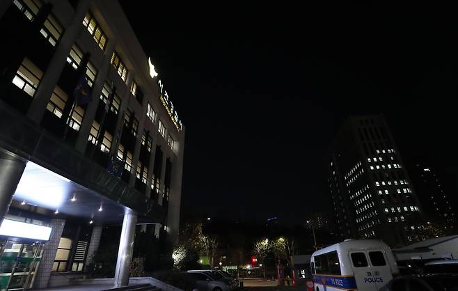 | ▲ 검찰이 백원우 전 청와대 민정비서관 밑에서 행정관으로 근무했던 검찰 수사관의 사망 사건과 관련해 2일 서초경찰서를 압수수색 했다. 2019년 12월 2일 밤 서울 서초경찰서(왼쪽) 길 건너편에 위치한 서울고검과 서울중앙지검. |