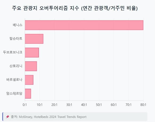 하지만 일부 지역에 관광객이 몰려 각종 문제가 발생하는 경우도 생겼다. 일명 '오버투어리즘'이다. 이는 세계적으로 ‘관광객이 너무 많다’는 것보다 ‘소수의 특정 장소에 관광객이 과도하게 집중된다’는 지리적 불균형의 문제다. 글로벌 컨설팅 기업 매킨지는 “전체 여행객의 80%가 전 세계 관광지의 단 10%에만 몰린다”고 지적했다.