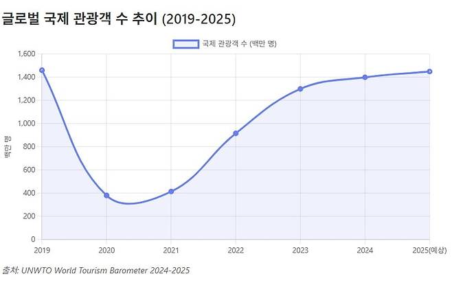 2일 세계관광기구(UNWTO)에 따르면 올 1분기 국제 관광객 수(도착 기준)는 3억명을 돌파했다. 코로나 팬데믹 이전인 2019년 동기 대비 3% 증가했다. 올해 연간으로 보면 작년보다 3~5% 증가할 전망이 나온다. 국제항공운송협회(IATA)도 올해 역대 최대인 49억 9000만 명의 승객이 항공기를 이용할 것으로 추정했다. 여객 부문 매출 역시 사상 최고치인 6930억 달러에 이를 전망이다. IATA의 지난 4월 설문조사에 따르면 응답자의 40%가 향후 12개월 동안 이전보다 ‘더 많이’ 여행할 것이라고 답했다. ‘더 적게’ 여행할 것이라는 응답은 6%에 불과했다.