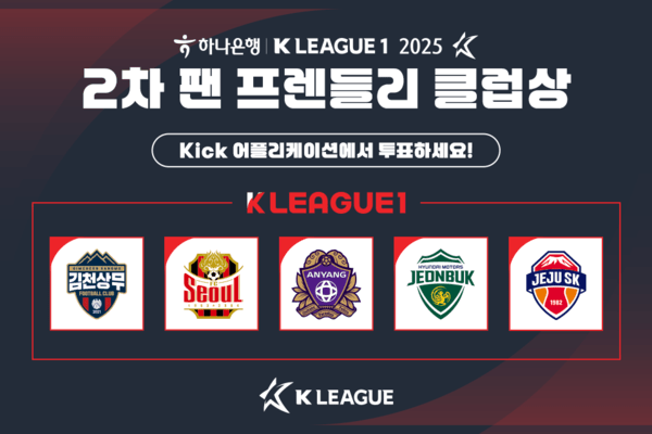 한국프로축구연맹(총재 권오갑, 이하 '연맹')이 2025시즌 2차 K리그1 '팬 프렌들리 클럽상' 팬 투표를 이달 2일(화)부터 4일(목)까지 3일간 실시한다.