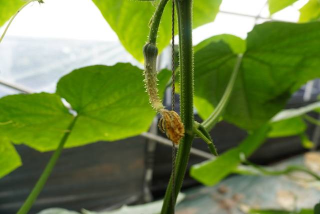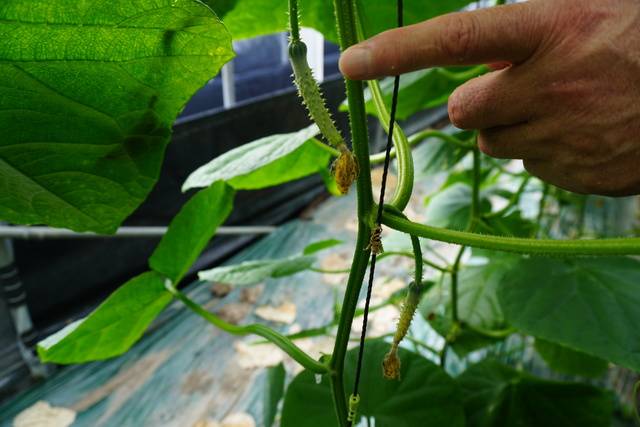 이씨는 “오이는 한 주에 정상과 8개는 나와야 하지만, 고온장해로 4~5개밖에 수확하지 못하고 있다”고 말했다. 하우스 바닥에는 성장하지 못하고 떨어진 오이들이 널려 있었고, 줄기에도 기형과가 쉽게 보였다.
