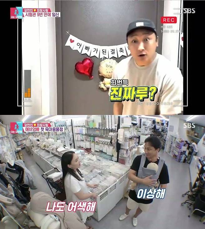 이날 양현민은 임산부 혜택을 제공하는 경복궁, 카페를 방문해 뱃속 아기 '앙쥬'까지 함께 데이트를 즐겼다. 양현민은 데이트 내내 아내를 알뜰살뜰히 챙기는가 하면 모르는 사람들에게도 임신 자랑을 하며 팔불출 면모를 드러내 웃음을 안겼다. 이후 두 사람은 육아용품점을 찾았다.