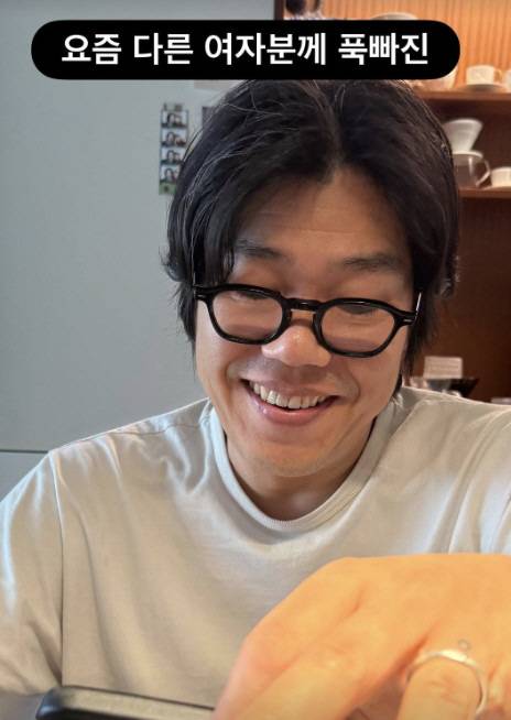 이효리는 "요즘 다른 여자분께 푹 빠진"이라며 휴대폰을 보며 활짝 웃고 있는 남편 이상순의 모습을 공개했다.