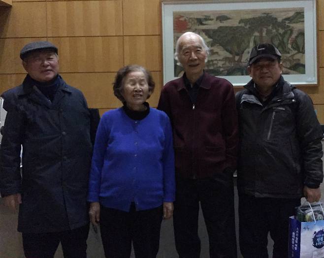 | ▲ 민청련 동지들은 이범영이 없는 지금도 매년 명절에 이범영 부모님을 찾아뵙고 있다. 사진은 2018년 2월 설날 즈음으로 맨 왼쪽은 양춘승, 맨 오른쪽은 권형택. |