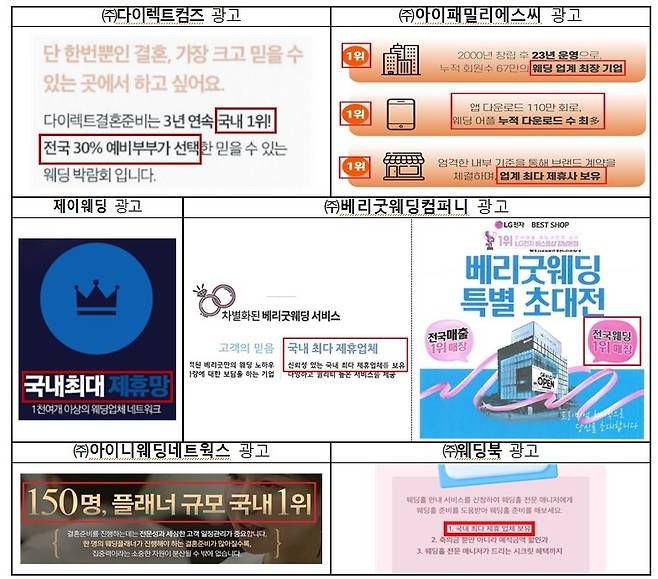 업체 주관 웨딩박람회를 개최하면서 '대한민국 최대 규모의 웨딩페스티벌', '320만 누적 최다 관람' 등으로 경쟁사업자보다 우월한 것처럼 광고한 사례도 있었다.