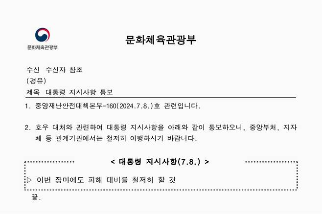 | ▲ 2024년 7월 8일 전달된 ‘대통령 지시사항' |