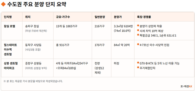 ‘10억 로또’ 잠실 르엘 흥행 잇나…4만 가구 쏟아지는 수도권, 주목할 곳은
