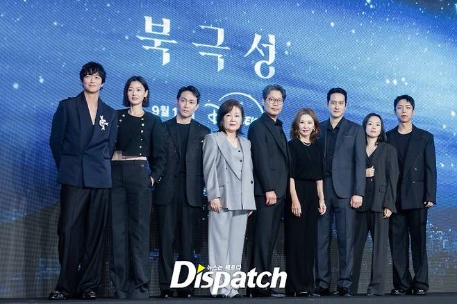 디즈니+ 새 시리즈 '북극성'(극본 정서경, 연출 김희원·허명행) 측이 2일 서울 종로구 포시즌스 호텔에서 제작발표회를 열었다. 배우 전지현, 강동원, 이미숙, 박해준, 김해숙, 유재명, 오정세, 이상희, 주종혁, 김희원·허명행 감독 등이 자리했다.