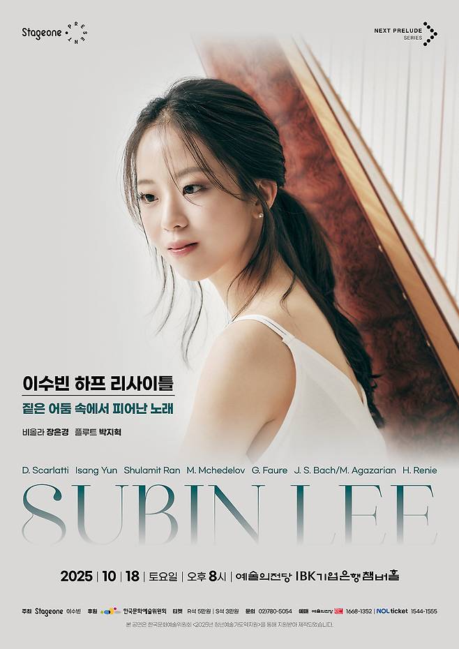 이수빈은 커티스 음악원과 예일대학교 음악대학원을 거쳐 현재 뉴잉글랜드 콘서바토리에서 수학 중이다. 세계적인 하프 제작사 라이언&힐리 어워즈 수상, 이탈리아 파도바 국제음악콩쿠르 우승 등 국제 무대에서 존재감을 입증한 그는 2025 포브스코리아 ‘30 Under 30’에도 선정되며 주목받고 있다. 성남시향, 국립심포니콘서트오케스트라, Philharmonians Orchestra 등과 협연했고, 트리오 아니모소(Trio Animoso) 멤버로서 실내악 무대에서도 활발히 활동 중이다.