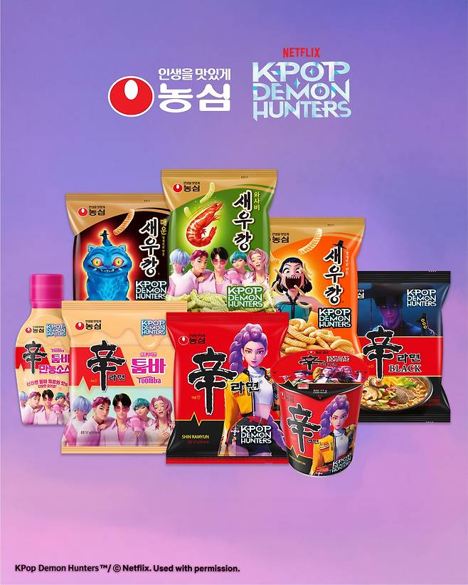 이들의 뒤를 이은 기업은 농심. 지난달 20일 농심은 '케데헌'의 공식 콜라보 상품을 출시한다고 알리면서 신라면과 새우깡 등의 제품 이미지를 공개했다.
