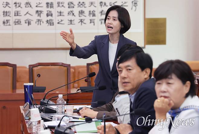 | ▲ 박은정, 나경원에 "초선은 가만히 앉아 있어? 사과하세요" 박은정 조국혁신당 의원이 2일 서울 여의도 국회에서 열린 법제사법위원회 전체회의에서 "초선은 가만히 앉아 있어"라고 말한 나경원 국민의힘 의원에게 사과를 요구하고 있다. |