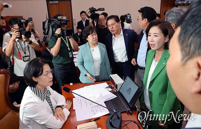 나경원 "초선은 가만 앉아있어"에 박지원 "나빠루"... 난장판 법사위