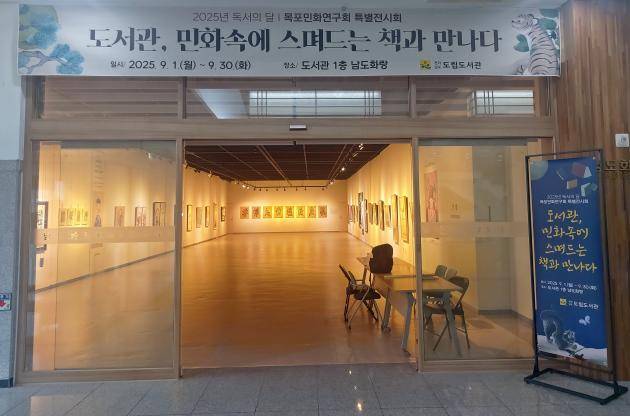 특별 전시로는 목포민화연구회 작가와 회원들의 초청 전시 ‘도서관, 민화 속에 스며드는 책과 만나다’<사진>가 오는 30일까지 펼쳐진다. 박구용 전남대 철학과 교수의 ‘철학으로 시대를 해석하다’라는 주제의 강연도 오는 29일 열린다.