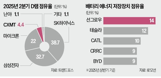 반도체, 에너지저장장치(ESS) 등 첨단 정보기술(IT) 부품·인프라 시장에서도 ‘중국 굴기’가 본격화하고 있다. D램 시장의 ‘넘버4’로 올라선 창신메모리테크놀로지(CXMT)와 배터리 에너지저장장치(BESS) 분야 세계 1위 자리를 꿰찬 선그로우 등이 대표 주자다. 산업계에선 정부의 전폭적인 지원, 세계 최대 내수 시장, 촘촘한 산업 생태계, 끊임없이 유입되는 똑똑한 이공계 인재 등 ‘네박자’가 맞아떨어진 결과라고 분석한다.