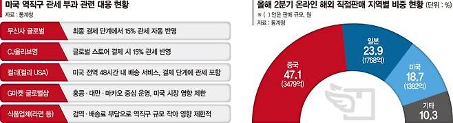 무신사 관계자는 "15%의 관세 부과로 소비자 입장에서는 불가피하게 가격 부담이 커질 수 있어 다양한 프로모션과 할인 혜택을 마련할 예정"이라며 "정책이 시행된 지 얼마 되지 않아 소비 시장의 즉각적인 반응이 뚜렷하게 나타나지는 않고 있지만, 상황을 면밀히 모니터링하며 소비자 이탈을 최소화할 것"이라고 말했다. 올리브영도 "통관 절차와 관세 납부라는 추가 장벽이 생긴 만큼 판촉 강화와 상품 차별화를 통해 대응할 것"이라고 밝혔다.