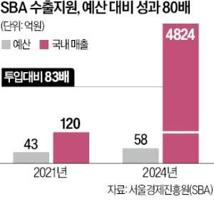 SBA의 투입 예산 대비 성과도 크게 향상됐다. 2021년 43억원 예산 지원으로 고작 120억원의 국내 매출을 올렸지만 지난해엔 58억원을 투입해 4824억원의 수출 실적을 냈다.