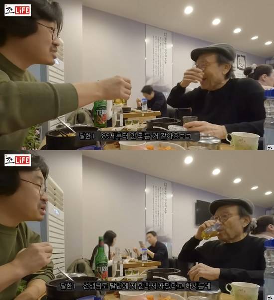 조달환에게 술을 건네던 신구는 "소맥을 타 줄 때 맥주병을 움직이는 게 힘들다"고 말하자, 조달환은 "이게 83세까지는 되셨는데... 85세 때부터 안 되는 것 같아요"라고 재치있게 말해 웃음을 터트렸다.
