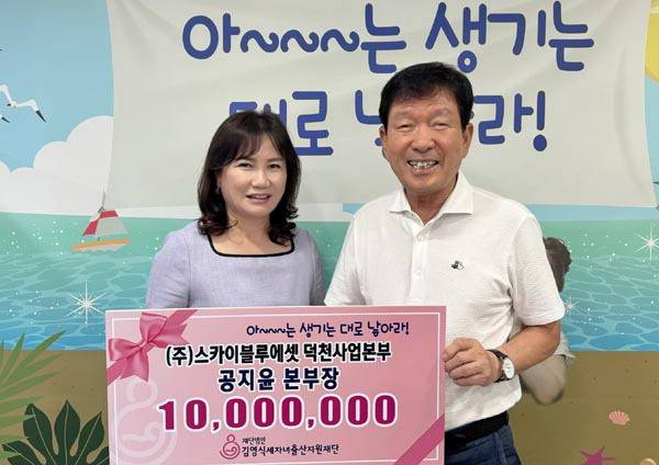 ㈜스카이블루에셋 덕천사업본부를 이끄는 공지윤 본부장이 최근 김영식세자녀출산지원재단에 개인적으로 1000만 원을 기부(사진)했다.