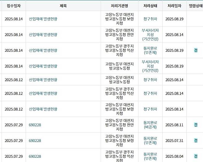 공공기관은 정보공개 청구를 받으면 10일 이내에 공개 여부를 결정해야 합니다. 고용노동부 서울지청은 이 기한을 꽉 채워 회신했지만, '현장 공장이 있는 대전, 보령, 천안 지청에 신청해야 한다'는 안내였습니다. 접수 직후 바로 안내해줬다면 열흘을 허비하지 않았을 텐데, 아쉬웠습니다. 안내를 받은 즉시 각 관할청으로 같은 내용으로 정보공개를 다시 신청했습니다.