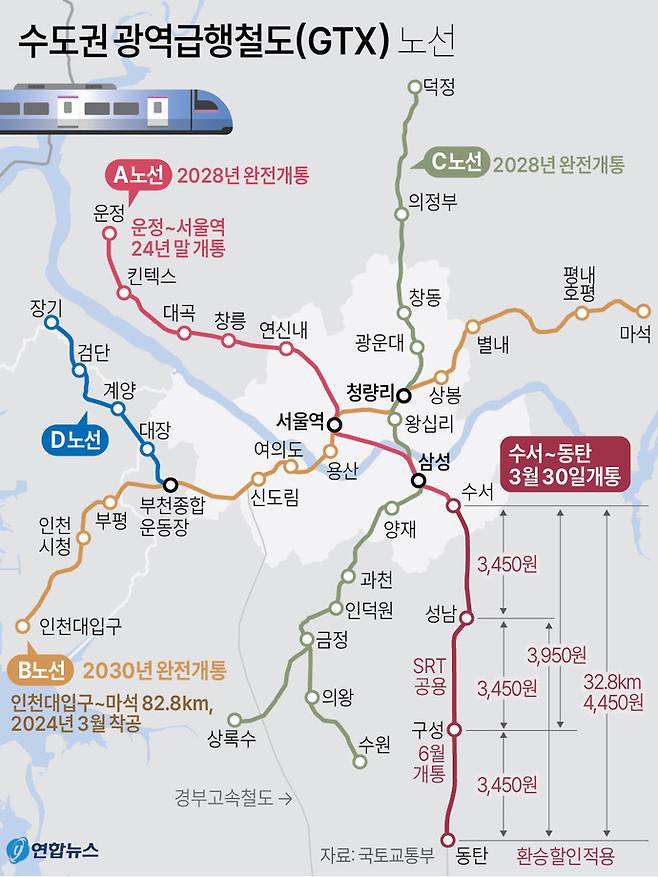 지난해 수서~동탄역, 운정중앙~서울역을 부분 운행 중인 A노선은 오는 2028년 삼성역 완전 개통을 목표로 공사 진행 중에 있다.