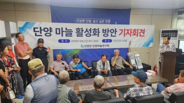 단양마늘연구회는 2일 오전 단양군청에서 기자회견을 열고 군의 종구(씨마늘) 사업 추진 방식에 강한 불만을 토로했다.