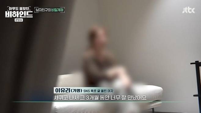 2일 방송된 JTBC '아무도 몰랐던, 비하인드(이하 '비하인드')'에서는 '자신의 전 남자친구와 성관계를 한 여성들'을 찾는 유리씨(가명)의 사연이 공개됐다.
