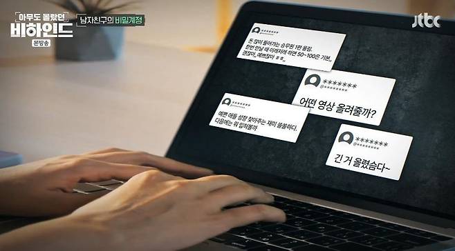 지금까지 유리씨가 확인한 윤씨의 계정은 모두 10개였고, 그곳에서 유리씨는 유명인사였다. 윤씨는 영상을 판매해 수익까지 내고 있었다.