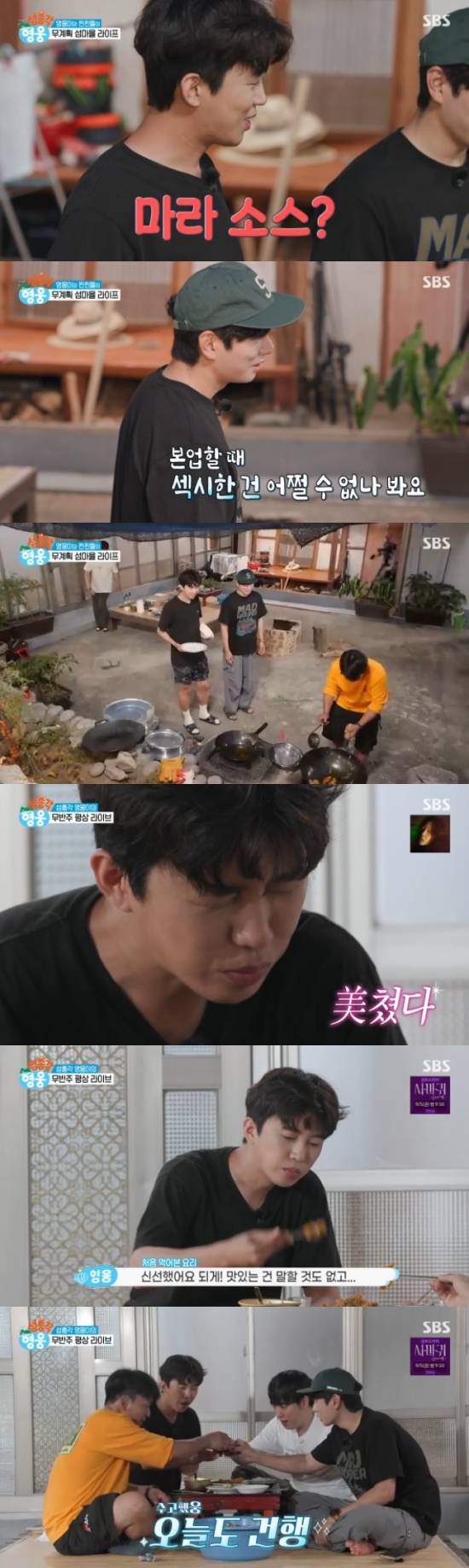 2일 방송된 SBS 예능 프로그램 '섬총각 영웅'에서는 완도 소모도에서 일상을 보내는 임영웅, 궤도, 임태훈(철가방 요리사) 그리고 깜짝 손님 이이경의 모습이 그려졌다.