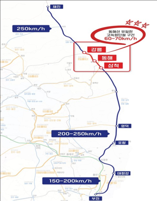 사업이 완료되면 철도 이동 시간이 최대 1시간 40분 단축되며, 강릉~부산 구간은 현재 5시간대에서 약 3시간 20분으로 줄어들 전망이다. 이를 통해 환동해권 접근성과 물류 경쟁력이 획기적으로 향상될 것으로 기대된다.