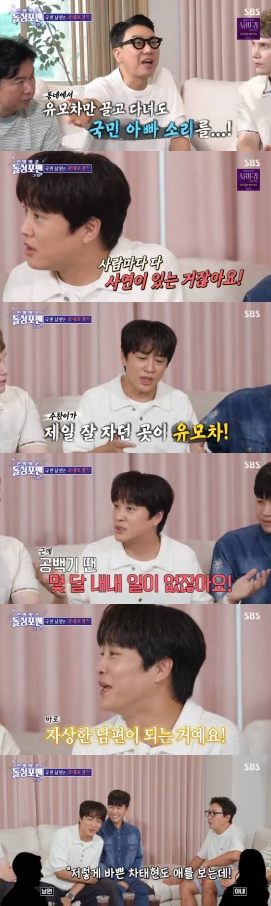 그러면서 "제가 아침형 인간이고, 아내는 아침잠이 많다. 그래서 산책 겸 유모차를 끌고 돌아다닌거다. 그 때 수찬이가 잘 자니까 그게 편해서 산책을 한건데, 그게 동네에서 소문이 엄청 났더라"면서 웃었다.