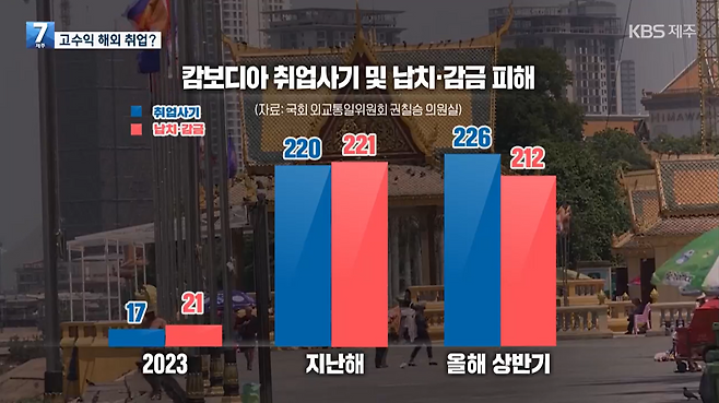 2023년 17건에 불과했던 캄보디아 취업사기 피해 신고는 지난해 220건까지 치솟았고, 올해는 상반기에만 226건으로 급증했습니다.