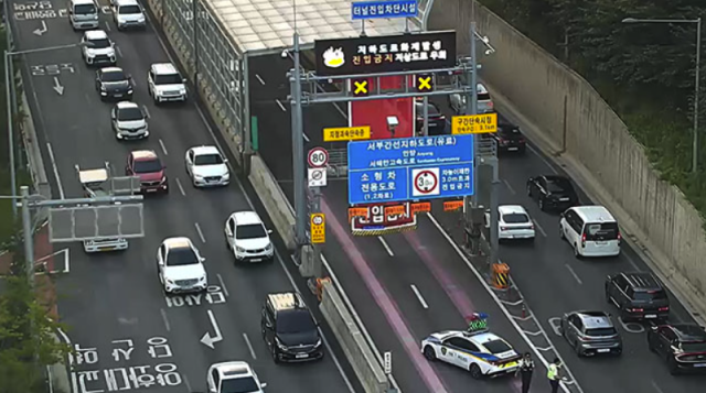 서부간선지하도로 터널 안 차량 화재···양방향 통제로 출근길 교통정체