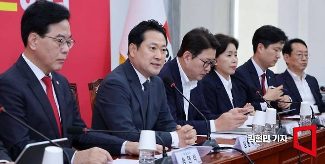 장동혁 국민의힘 대표가 3일 국회에서 열린 긴급 최고위원회의에서 발언하고 있다.