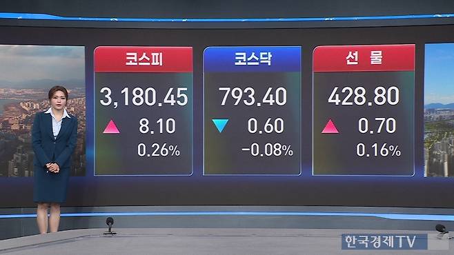 코스피는 0.17% 상승한 3177선, 코스닥은 0.09% 하락한 793선에 개장.