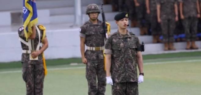 지난 2일 충남 논산 육군훈련소에서 열린 수료식에서 차은우는 훈련병 대표로 선정돼 보고 및 경례 지휘를 맡았다.