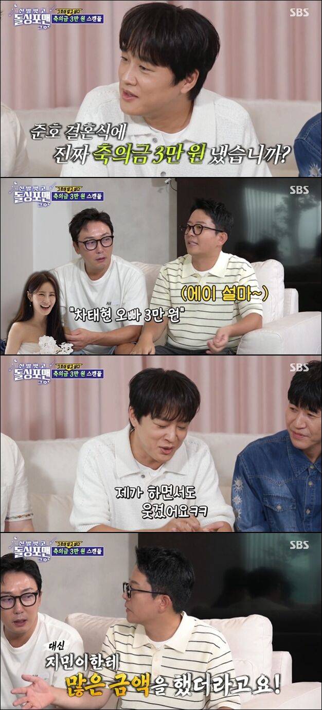 이에 다들 차태현이 무슨 이유로 절친한 김준호에게 3만원의 금액을 축의금으로 냈는지 궁금해했다.