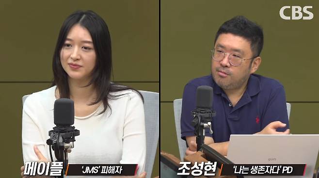 넷플릭스 다큐 '나는 신이다' 기억하실 겁니다. 우리 사회에 던진 충격이 대단히 컸는데요. 특히 사이비 종교 JMS의 교주 정명석, 정명석의 성폭력 실상을 드러냈죠. 그로 인해서 수많은 피해자들의 목소리가 세상 밖으로 나왔습니다. 그리고요. 지난달에 그 후속작, '나는 생존자다'가 공개됐습니다. 이번에도 1위에 오르면서 다시 한 번 큰 관심을 모으고 있는데요. 이번에는 정명석뿐만 아니라 2인자 정조은의 실체까지 추적하면서 JMS 내부의 은폐, 그리고 공범 구조까지 깊게 파헤쳤습니다. 새로운 피해자들의 증언이 이어졌고 20명 넘는 피해자가 새로 고소에 나섰습니다. 그래서요. 오늘은 '나는 신이다'와 '나는 생존자다'를 연출한 조성현 피디, 그리고 피해 사실을 세상에 알리고 최근에 <흔적>이라는 제목의 책을 펴낸 메이플 씨를 함께 모셨습니다. 제가 볼 때는 가장 용기 있는 두 분이 아닌가 싶은데요. JMS의 지금 현실 그리고 또 그 이후의 삶까지 직접 들어보겠습니다. 조성현 PD와 메이플 씨입니다. 안녕하십니까?