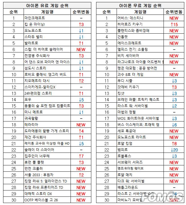 이번 주 아이폰 무료 게임 순위에서는 신작 게임이 차트 상위권을 기록했다.