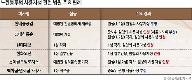 3일 경영계에 따르면 대법원에 계류돼 있는 HD현대중공업과 CJ대한통운의 재판 결과에 이목이 집중되고 있다. ‘원청의 사용자성’에 대한 대법원의 최종 판단에 따라 기업 경영 전반에 중대한 파장을 몰고 올 가능성이 크기 때문이다.