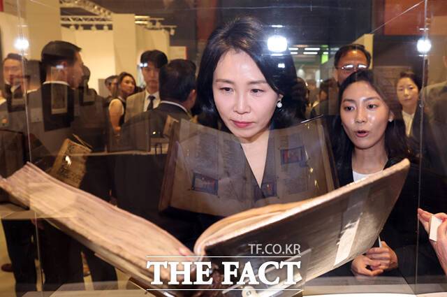 [더팩트ㅣ이새롬 기자] 이재명 대통령의 부인 김혜경 여사가 3일 서울 강남구 코엑스에서 열린 '키아프 서울(Kiaf SEOUL 2025), 프리즈 서울 2025(Frieze Seoul 2025)' 개막식에 참석해 전시된 작품들을 관람하고 있다.
