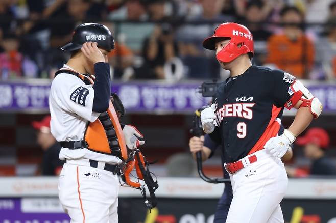 이날 경기를 앞두고 이범호 감독은 "경기를 많이 안 나가 봤으니까 잘하다가도 안 좋은 상황이 생길 수 있다. 그걸 극복하고 이겨내야 좋은 선수가 된다. 지금은 실수를 하더라도 놔두면서 성장할 수 있게끔 하고 싶다. 공격력이 아까우니까 공격력을 극대화 시킬 수 있는 부분을 고민하겠다"고 말했는데, 애석하게도 곧바로 아쉬운 장면이 나오고 말았다.