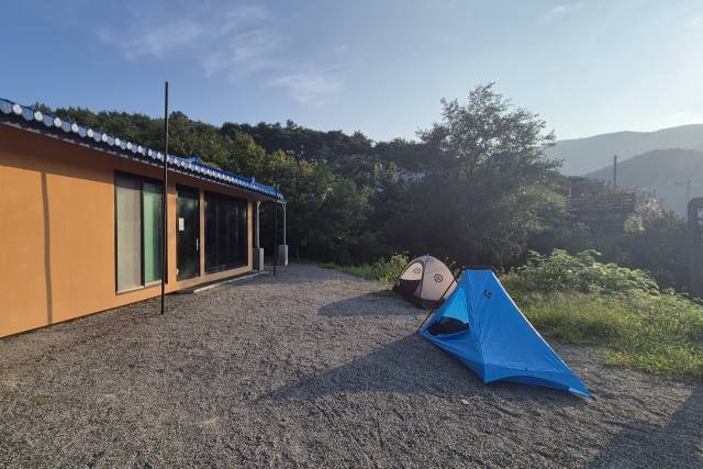 원래 1박을 하려던 장소는 이곳에서 3㎞정도 떨어진 3구간 금낙정이었다. 하지만 고관절 통증이 심해진 탓에 사기점 공소에 마련된 여행자 쉼터에서 저녁을 먹고 마당에 텐트를 친 뒤 일과를 마무리했다.