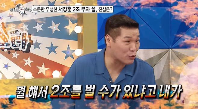 서장훈은 "처음에는 2조가 아니었다. 2천억에서 3천억, 5천억, 1조, 2조까지 불어났다"면서 "2조 이야기를 계속 하니까 내가 볼 때 100명 중 5명까지는 믿는 것 같다"며 재산 루머를 언급했다.
