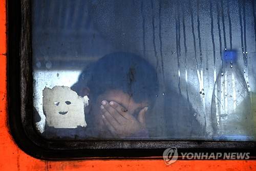 epa12347904 (FILE) - A migrant child reacts after boarding a full train heading to the border with Serbia, near the town of Gevgelija, The Former Yugoslav Republic of Macedonia, 12 September 2015(reissued 03 September 2025). The 2015 European migrant crisis refers to a large-scale arrival of refugees and migrants, especially from the Middle East, to Europe. The crisis reached a peak in terms of public visibility, humanitarian challenges and political responses early September: 1 September, thousands of refugees were stranded at the Budapest?s Keleti railway station; 2 September, the photo of two-years old Alan Kurdi washed up on a Turkish beach became a powerful symbol of the crisis; 05 September, Germany and Austria jointly allowed refuges to cross their borders and apply for asylum. Angela Merkel?s decision to allow refugees into Germany marked a significant turning point, temporarily waiving the European Dublin Regulation. Her famous statement, "We can do this" (Wir schaffen das), is directly tied to this moment. EPA/GEORGI LICOVSKI *** Local Caption *** 52205495