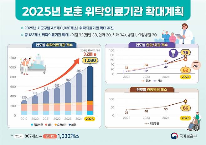 반면, 전국 678곳 위탁보훈병원 이용자는 401만4218명에 총 진료비는 2724억원으로 집계됐다.
