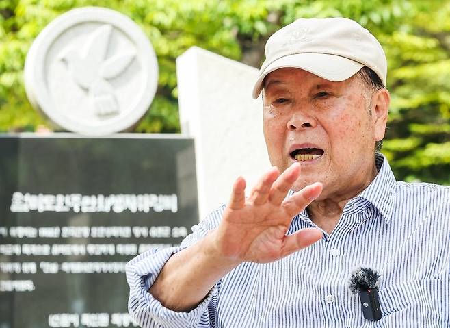 폭염이 기승을 부리던 지난달 7일 진창세(85)씨는 모자를 눌러쓰고 집을 나섰다. 인천 연수구 연수동에서 시작한 그의 발걸음이 닿은 곳은 서울 용산구, 현수막이 거리에 다닥다닥 내걸린 전쟁기념관 앞 인도였다. 길 건너편으로 대통령실 청사가 보였다.