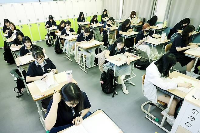 | 2026학년도 대학수학능력시험 9월 모의평가가 실시된 3일 광주정광고등학교에서 학생들이 시험을 치르고 있다./김애리 기자 |