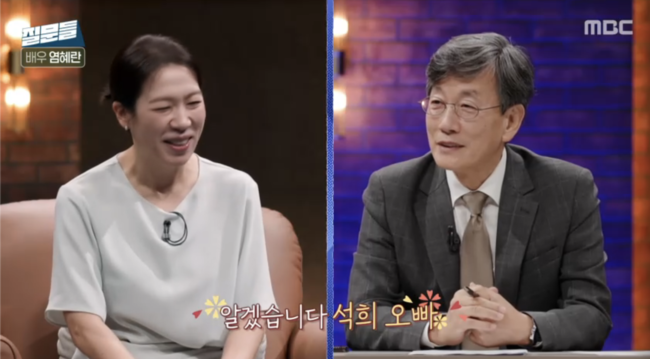 먼저 "석희 오빠"라고 부른 염혜란을 보며 손석희는 "혜란아 우리 오늘 잘 해보자"라고 스윗하게 말했다.