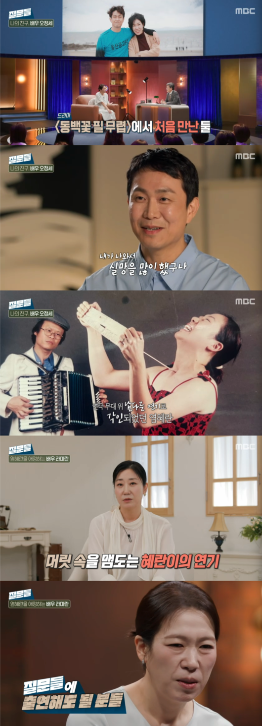 오정세는 “‘동백꽃’에서 처음 염혜란을 만났다. 20년 전 연극 ‘차력사와 아코디언’ 관객으로 무대 위 염혜란을 봤다. 저도 연극을 하고 있었지만 긴장 많이 하고 무대가 편하지 않을 때였다. 감정신을 저렇게 표현하는구나 연기를 저렇게 한다고? 각인이 됐다”고 당시를 떠올렸다.