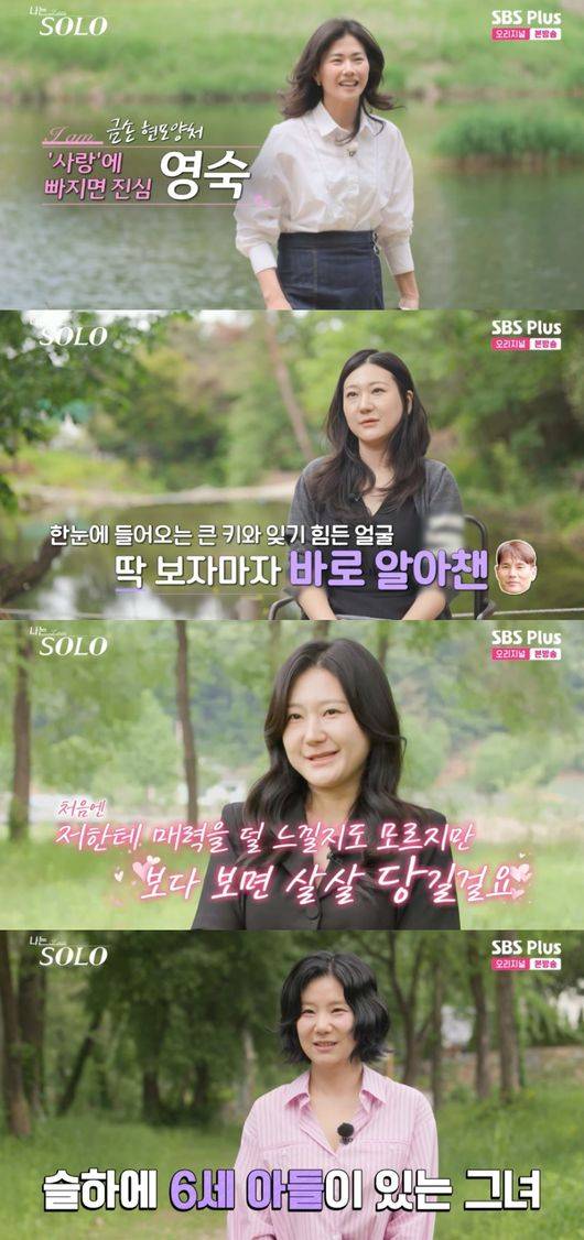 세 번째로 6살 아들을 둔 순자가 등장했다. 그는 신청 계기로 “지인이 저 운동하는 헬스 트레이너 선생님이다. ‘나는 솔로’ 광팬인데 이거 꼭 나갔으면 좋겠다고 해서 나갔다”라고 밝혔다.